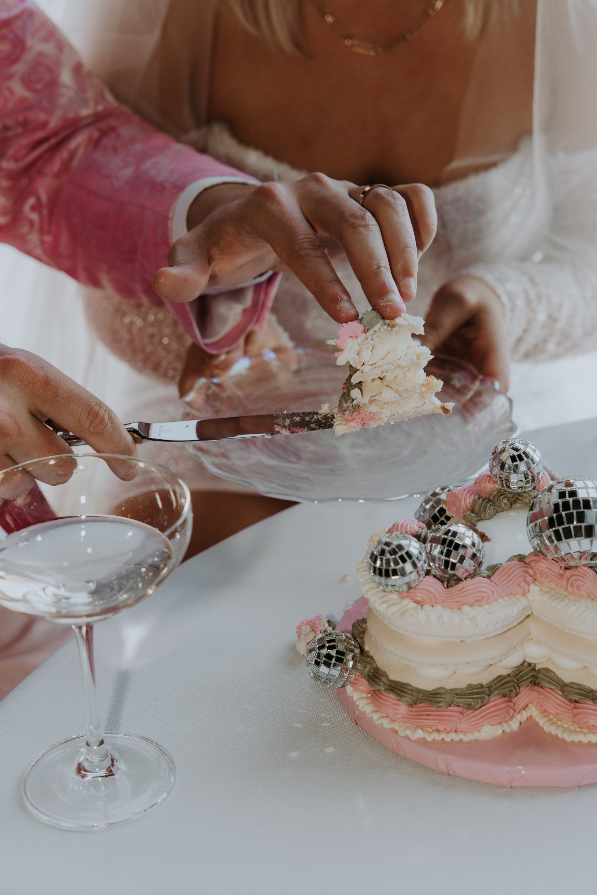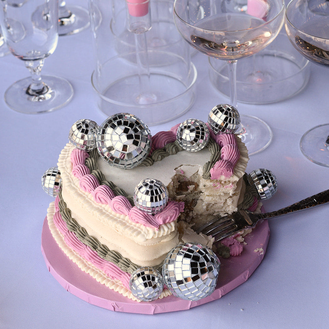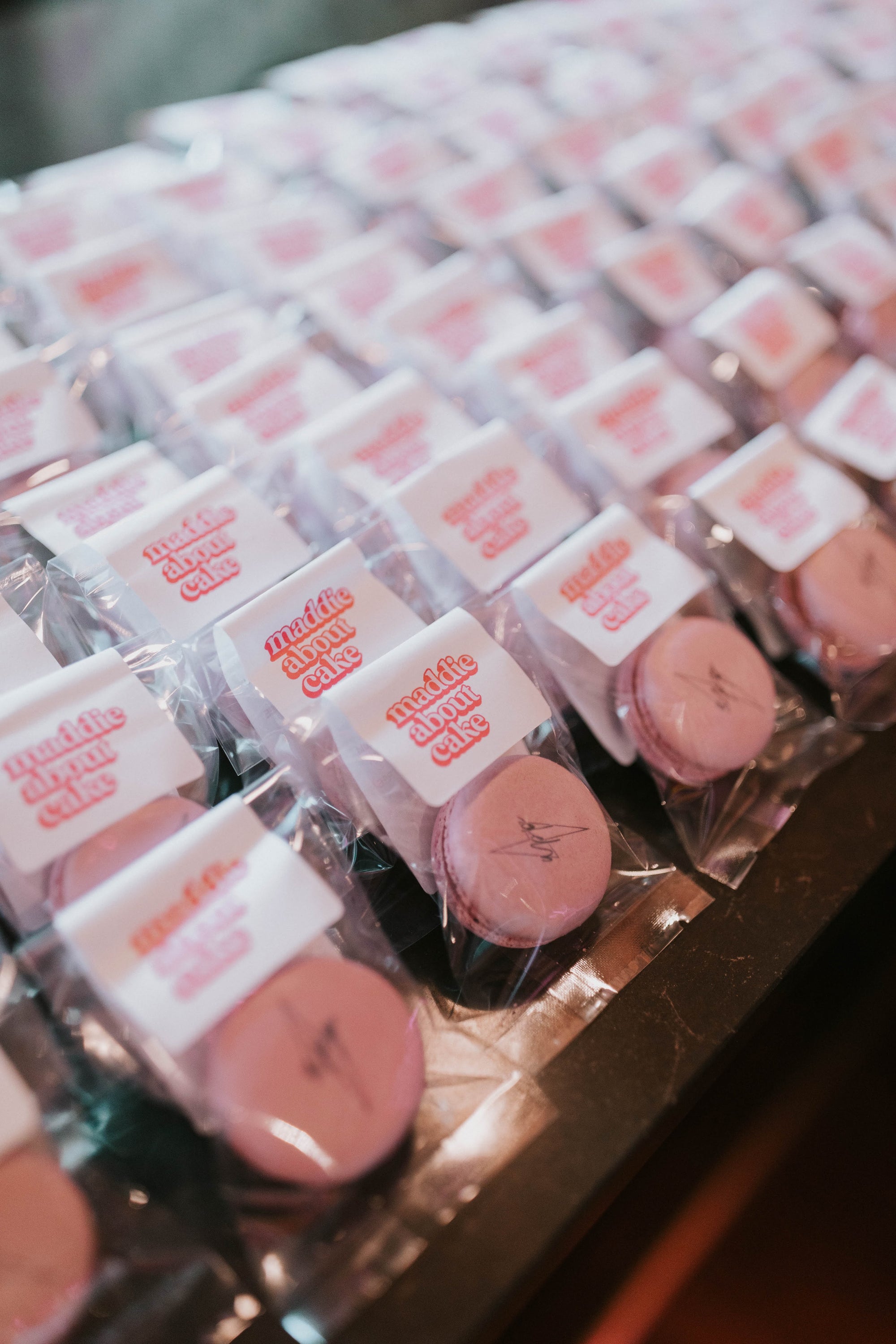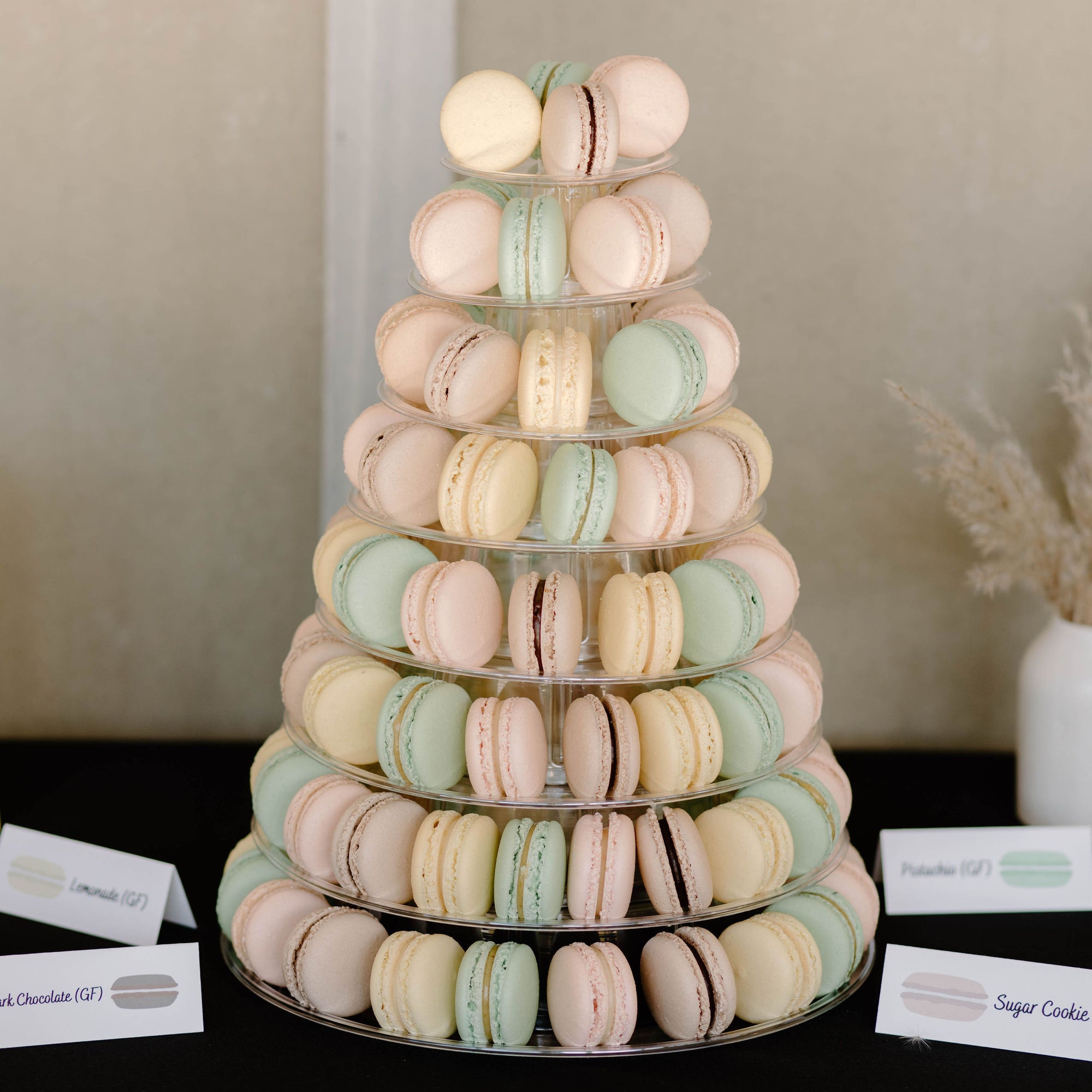 $60 for four large macarons stacked like a cake!Optional add-on: mini disco balls - $3